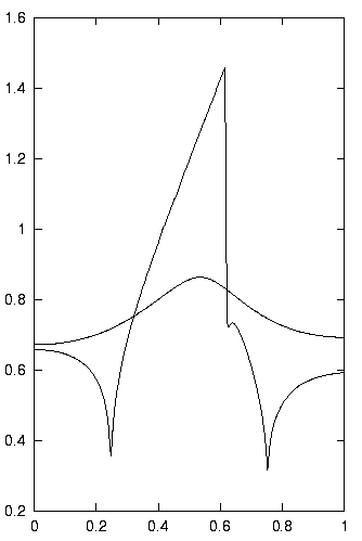 Distribution of Mach number along walls Detail of the triangulation Detail of the isolines of Mach number Distribution of the Mach number along walls. Detail of the mesh near the shock wave Detail of the isolines of Mach number near the shock wave
