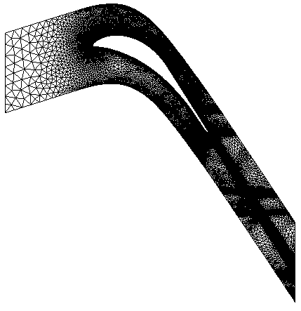 Triangulation of computational domain: 32 721 triangles. This mesh was generated by the anisotropic mesh adaptation technique.