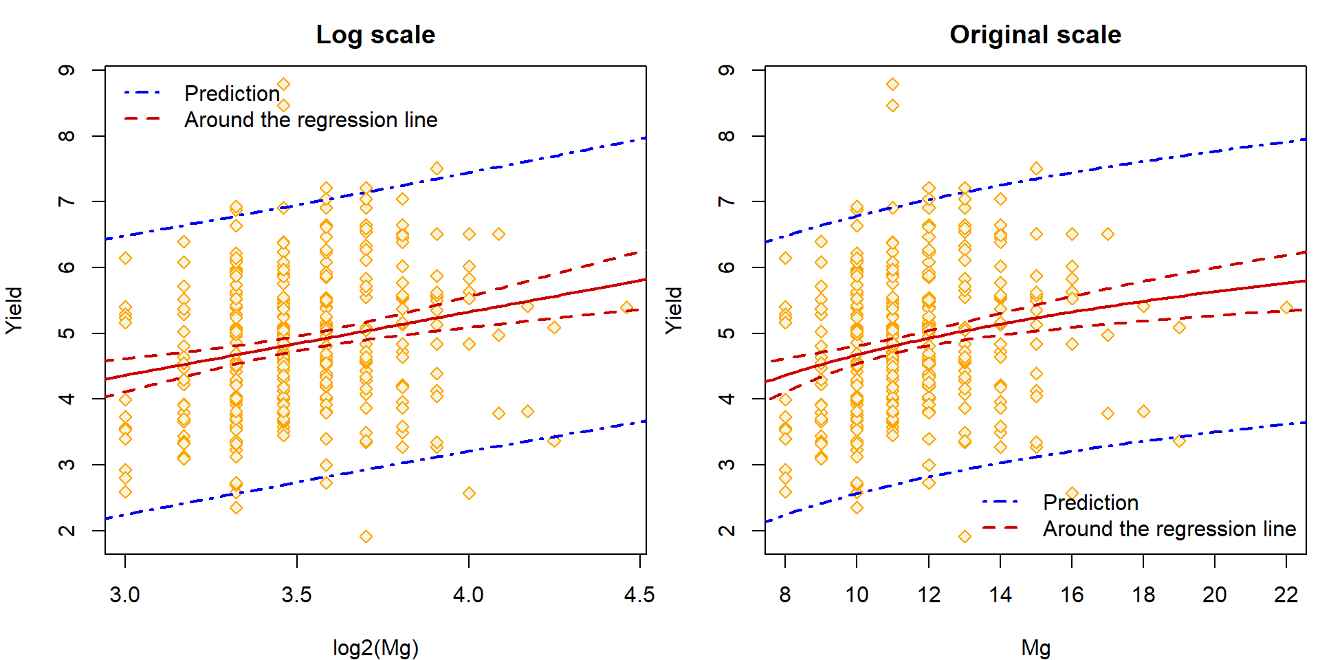ciEY.aLogMg <- predict(aLogMg, data.frame(Mg = x.Mg), interval = "confidence",