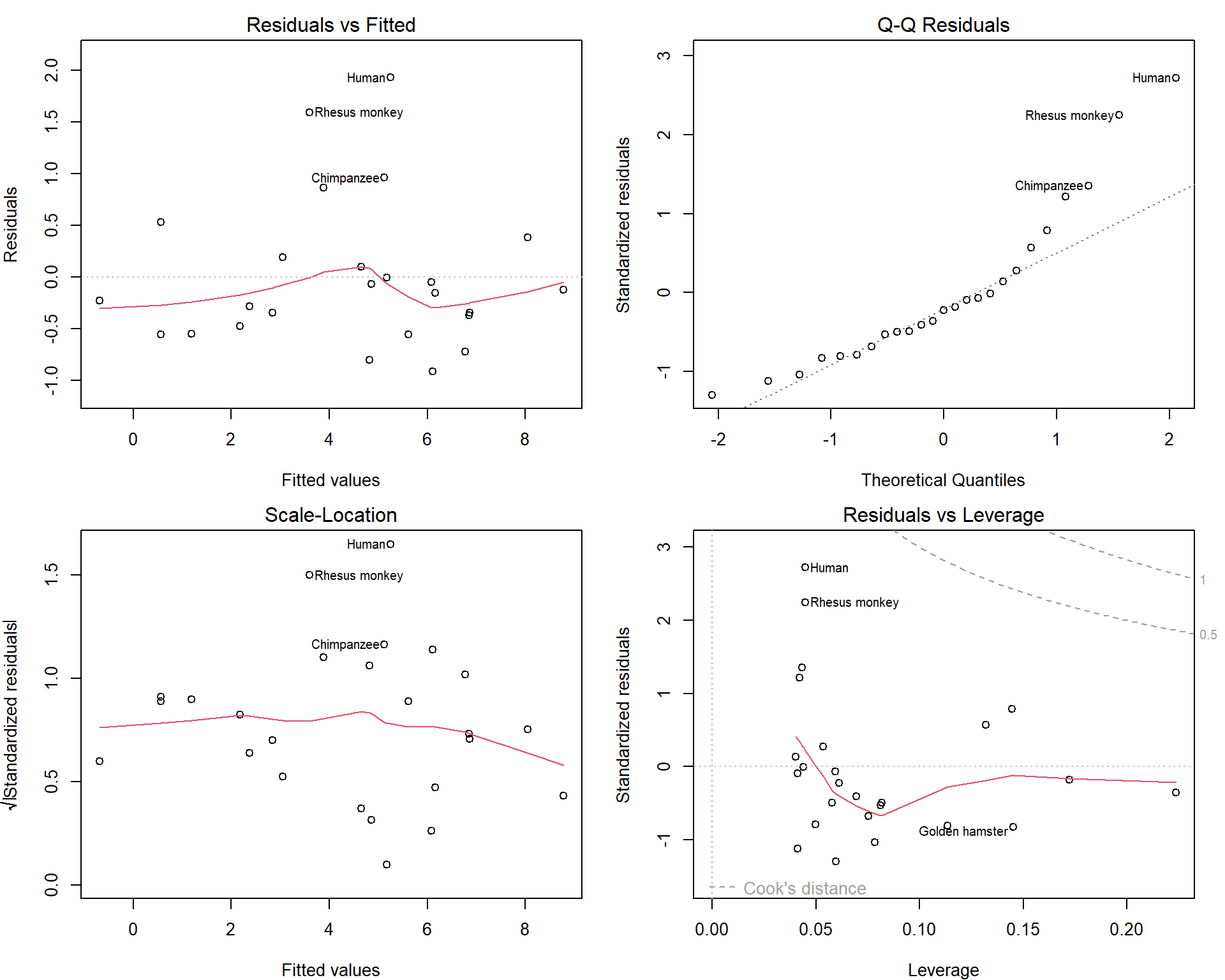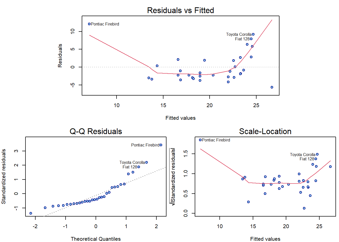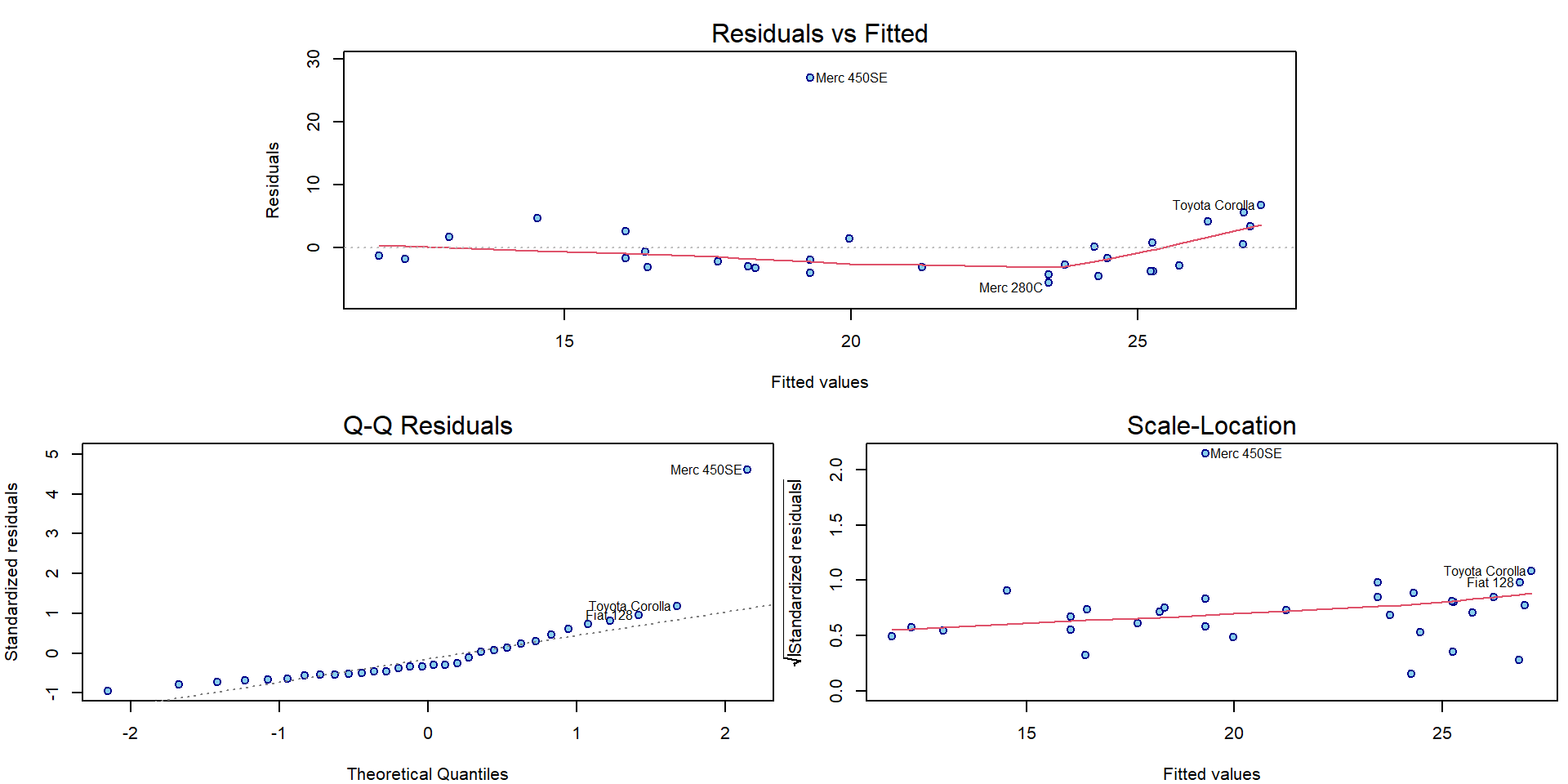 We will only show enough to understand the two default plots for linear models: