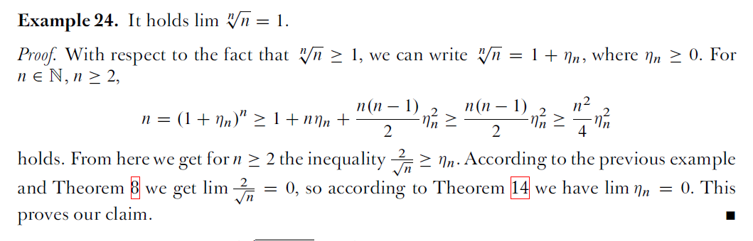 Důkaz \(\lim\limits_{n\to\infty}\sqrt[n]{n} = 1\).