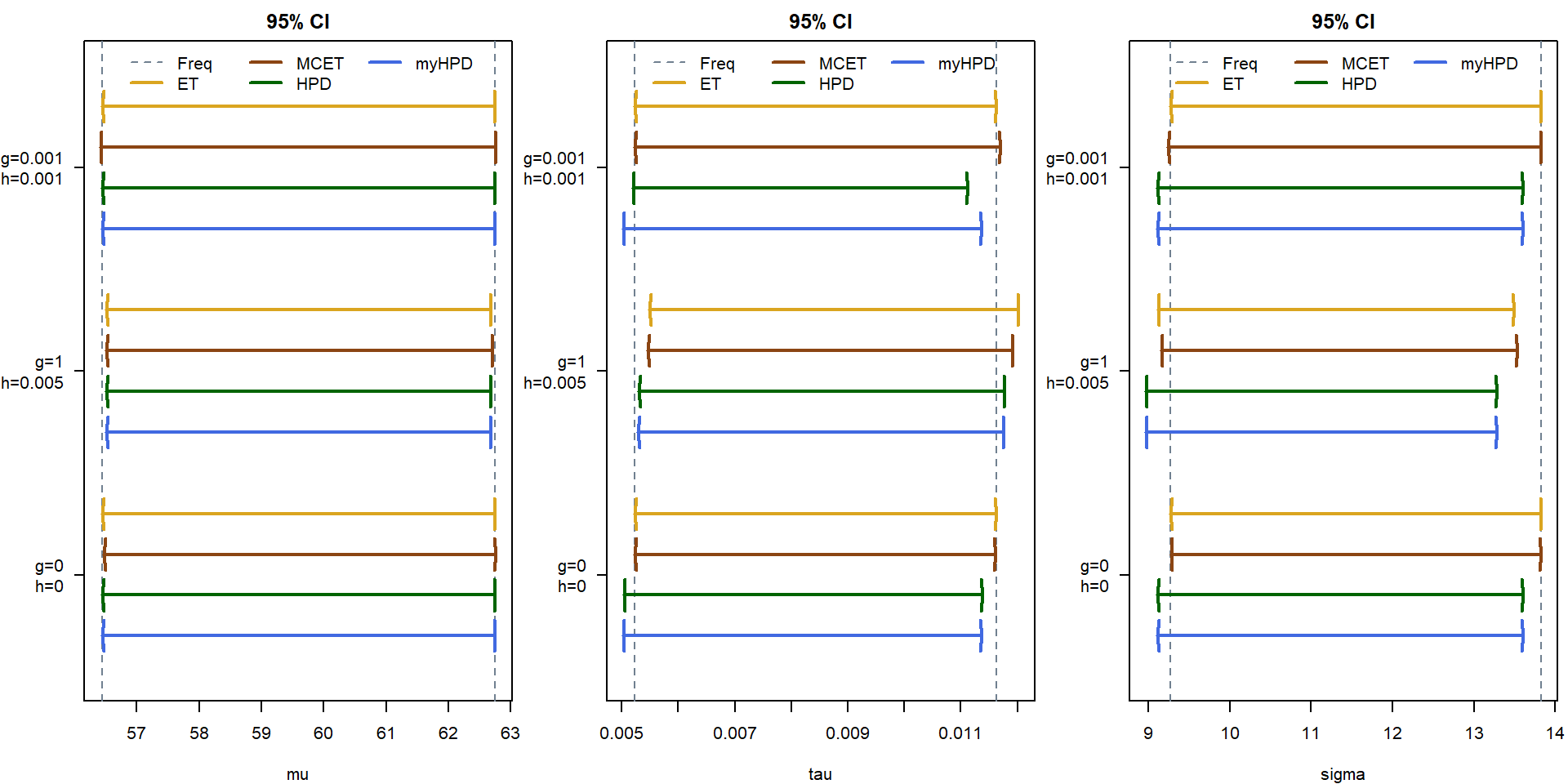 colnames(CI$mu$MCET) <- colnames(CI$tau$MCET) <- colnames(CI$sigma$MCET) <-